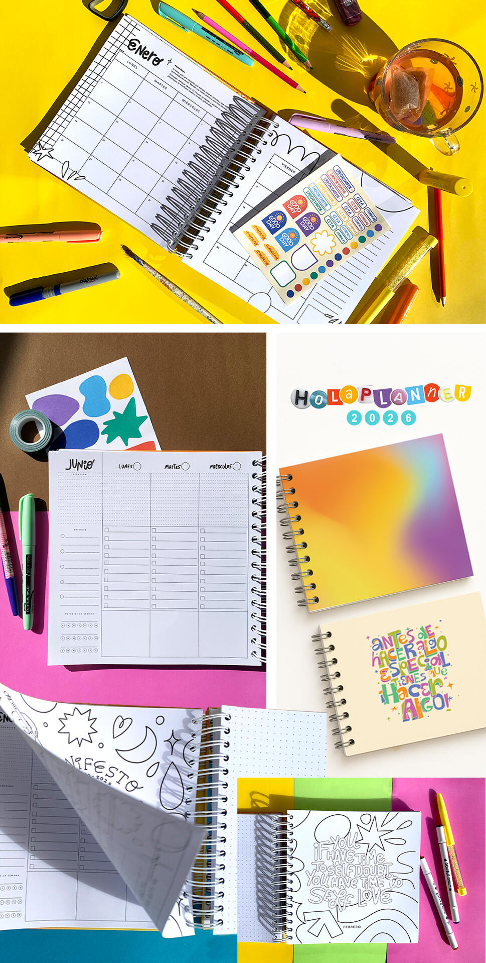 El Holaplanner te da la bienvenida y viene acompañ-arte, no solo para organizar tus días, sino para crear un espacio creativo que inicia como un lienzo en blanco, con miedos y temores, pero cada día lo conviertes en una obra tuya llena de pintura o stickers o crayones o rayones. 🖌️Su intención es: que disfrutes tus días con un poco de arte y diversión. 🎨 No te dará todas las respuestas, pero te recordará que dedicarle tiempo a tu ceatividad ayuda a resolver esos problemas.✽ Tamaño de 8x8 pulgadas con portada dura y espiral metálico.💡